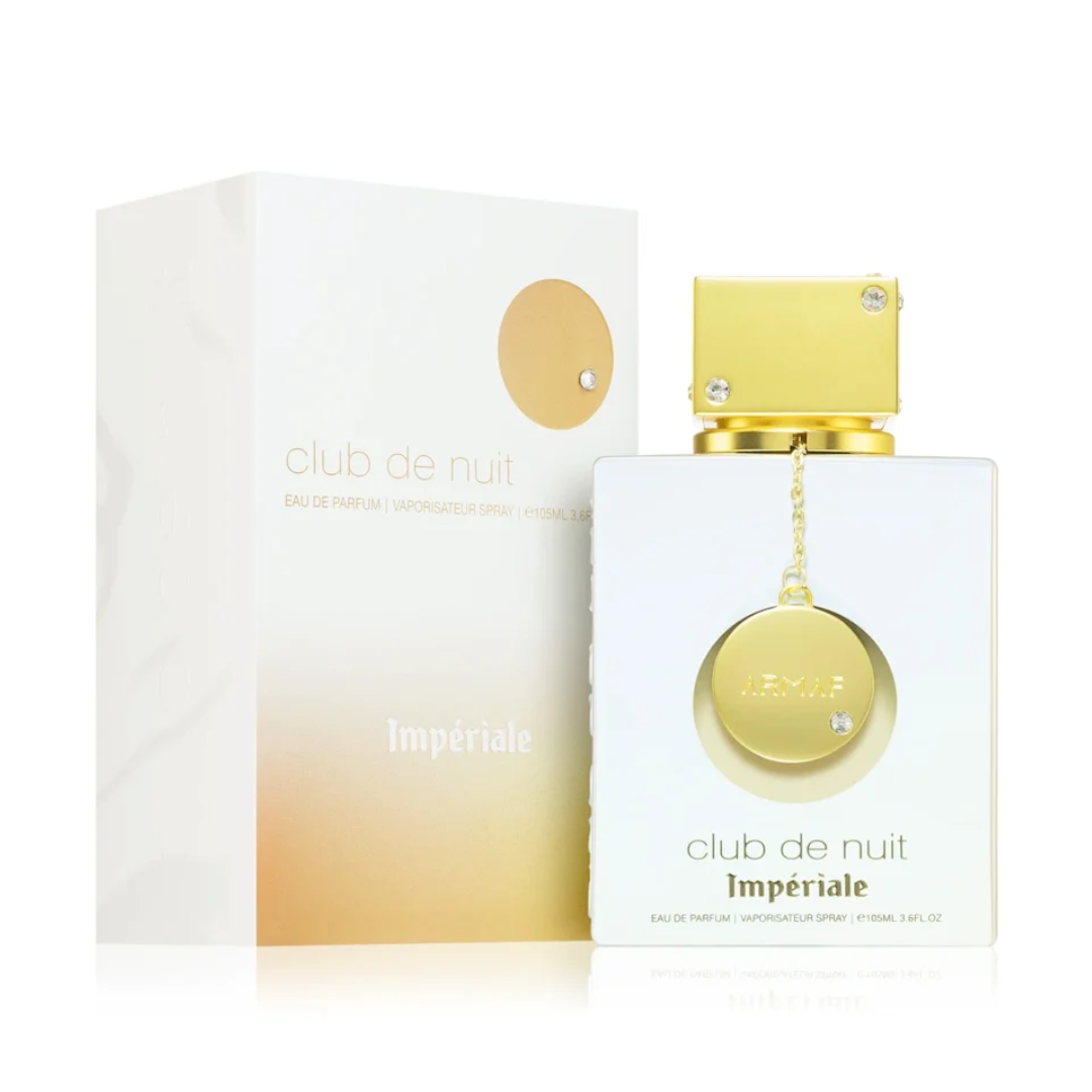Club de Nuit White Imperiale de Armaf é um perfume Feminino. Esta é uma nova fragrância. Club de Nuit White Imperiale foi lançada em 2022. As notas de topo são: Lichia, Bergamota e Noz-moscada. As notas de coração são: Rosa Turca, Baunilha, Almíscar e Peônia. As notas de fundo são: Baunilha, Incenso, Cashmeran e Cedro.