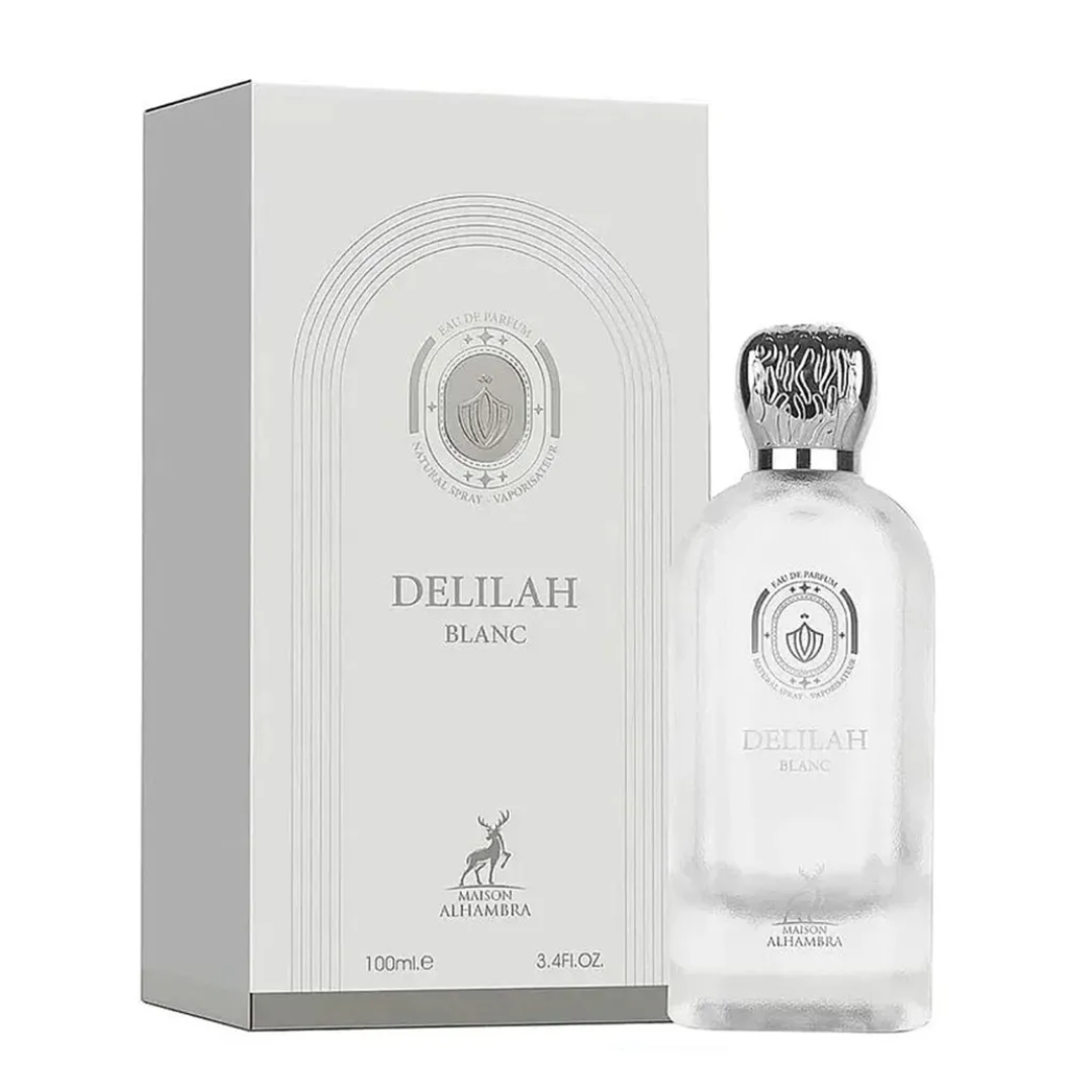 Delilah Blanc de Maison Alhambra é um perfume Floral Frutado Feminino. Delilah Blanc foi lançada em 2024. As notas de topo são: Bergamota, Pêssego Branco e Mandarina. As notas de coração são: Flor de Laranjeira e Vetiver. As notas de fundo são: Almíscar e Baunilha.