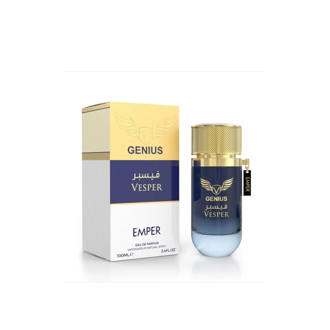 Genius Vesper by Emper é um Eau de Parfum sofisticado e refrescante projetado para o homem moderno que incorpora clareza, elegância e força. Esta fragrância de 100ML abre com a vibração nítida de toranja cintilante e folha de violeta, entregando uma energia alegre e edificante. O coração revela violeta suave e notas amadeiradas refinadas, enquanto o dry-down se estabelece em luxuosos âmbar-gris e madeira de âmbar, criando um rastro quente e magnético que perdura com confiança silenciosa.