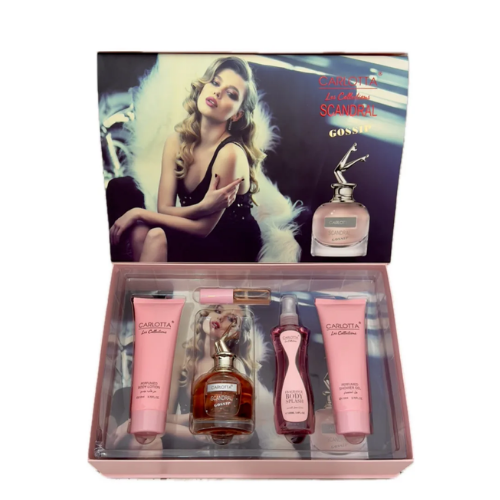 O Kit Carlotta Scandral Gossip é uma coleção feminina inspirada no icônico Scandal de Jean Paul Gaultier, oferecendo uma alternativa acessível com qualidade notável. Esta fragrância combina notas doces, florais e orientais, resultando em um aroma sofisticado e envolvente.