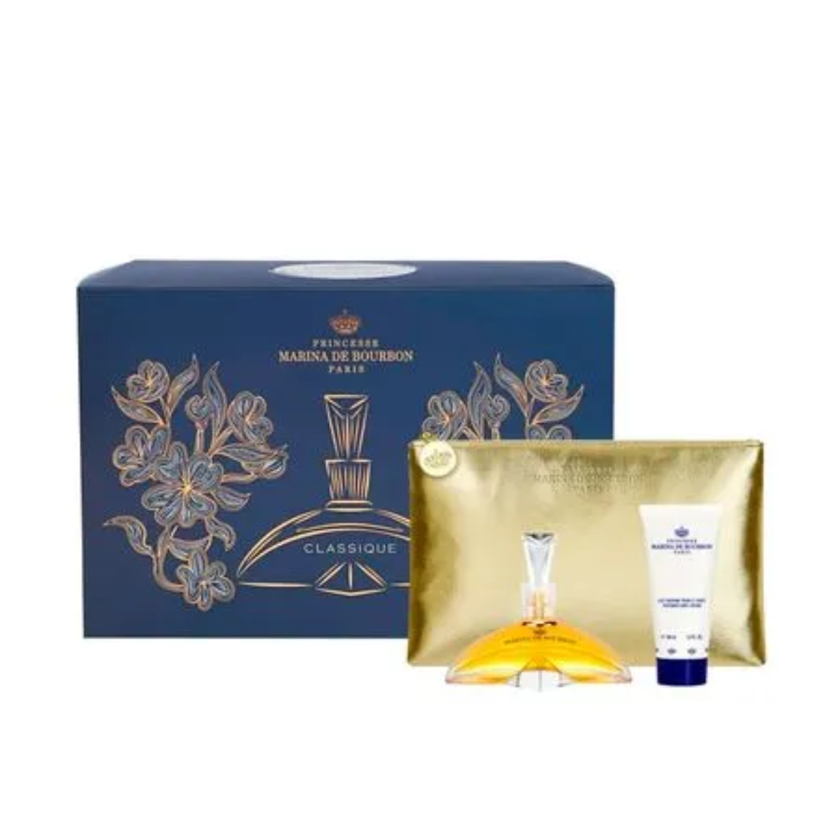 O Kit Marina de Bourbon Classique Feminino é a escolha perfeita para quem busca sofisticação e cuidado completo. Com a Eau de Parfum de 100ml, a Body Lotion de 100ml e uma elegante necessaire, este conjunto proporciona uma experiência única de fragrância, hidratação e praticidade. A fragrância floral frutal do perfume é suavizada pela loção corporal, enquanto a necessaire facilita o transporte e a organização, tornando este kit uma excelente opção para presente ou para o uso diário.Características:Marca: Marina de BourbonLinha: ClassiqueCategoria: Perfume + Loção Corporal + NecessaireVersão: N/ABenefícios: Hidratação, fragrância prolongada, praticidade, frescorIngredientes Principais: Notas florais, frutais, e amadeiradasModo de Aplicação:Aplique a Eau de Parfum nas áreas de pulsação, como pescoço, punhos e atrás das orelhas, para uma fixação intensa. Aplique a Body Lotion em todo o corpo para uma hidratação profunda e para prolongar a fragrância ao longo do dia.