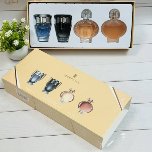 O Kit Mystical Million Eau de Parfum é um conjunto elegante que oferece quatro fragrâncias inspiradas em perfumes de marcas renomadas. Cada frasco contém 30 ml de Eau de Parfum, proporcionando uma experiência olfativa diversificada e sofisticada.