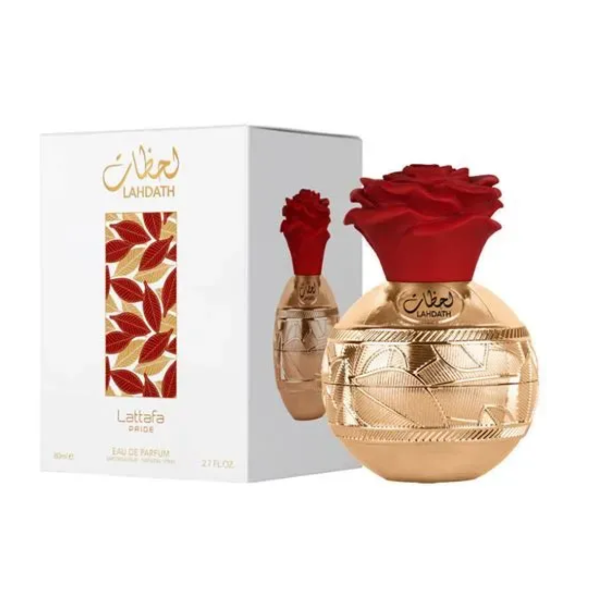 Lahdath de Lattafa Perfumes é um perfume Floral Amadeirado Almiscarado Compartilhável. Esta é uma nova fragrância. Lahdath foi lançada em 2022. O perfumista que assina esta fragrância é Kevin Mathys. As notas de topo são: Rosa e Limão. As notas de coração são: Rosa e Caramelo. As notas de fundo são: Baunilha, Almíscar e Cedro.